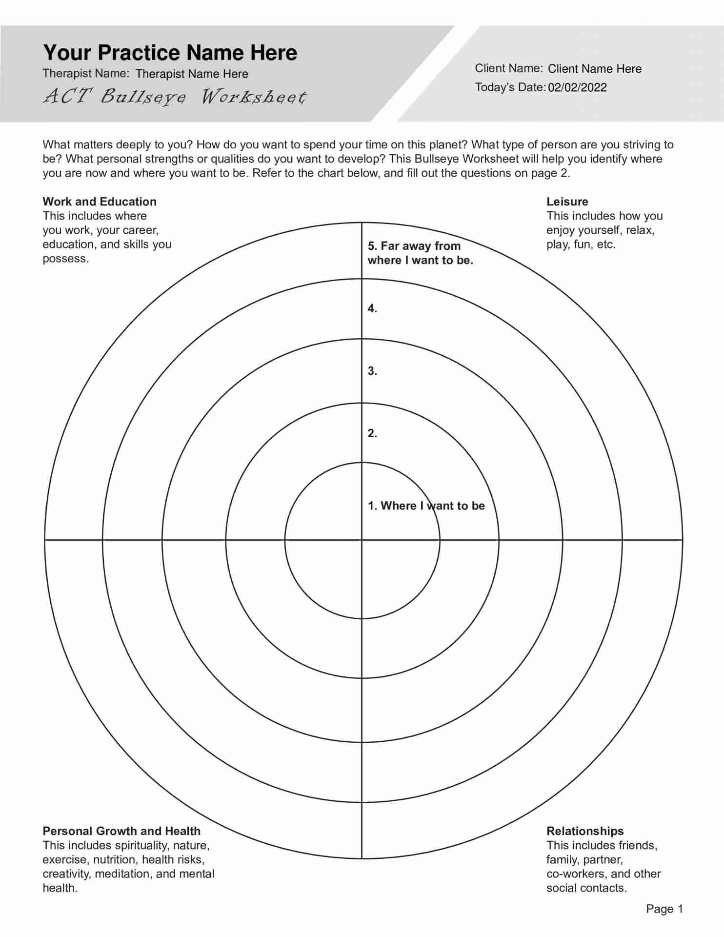 ACT Therapy Worksheets Acceptance And Commitment Therapy Therapy Tools Therapy Worksheets CBT Values Bullseyes Mental Health Worksheets Etsy