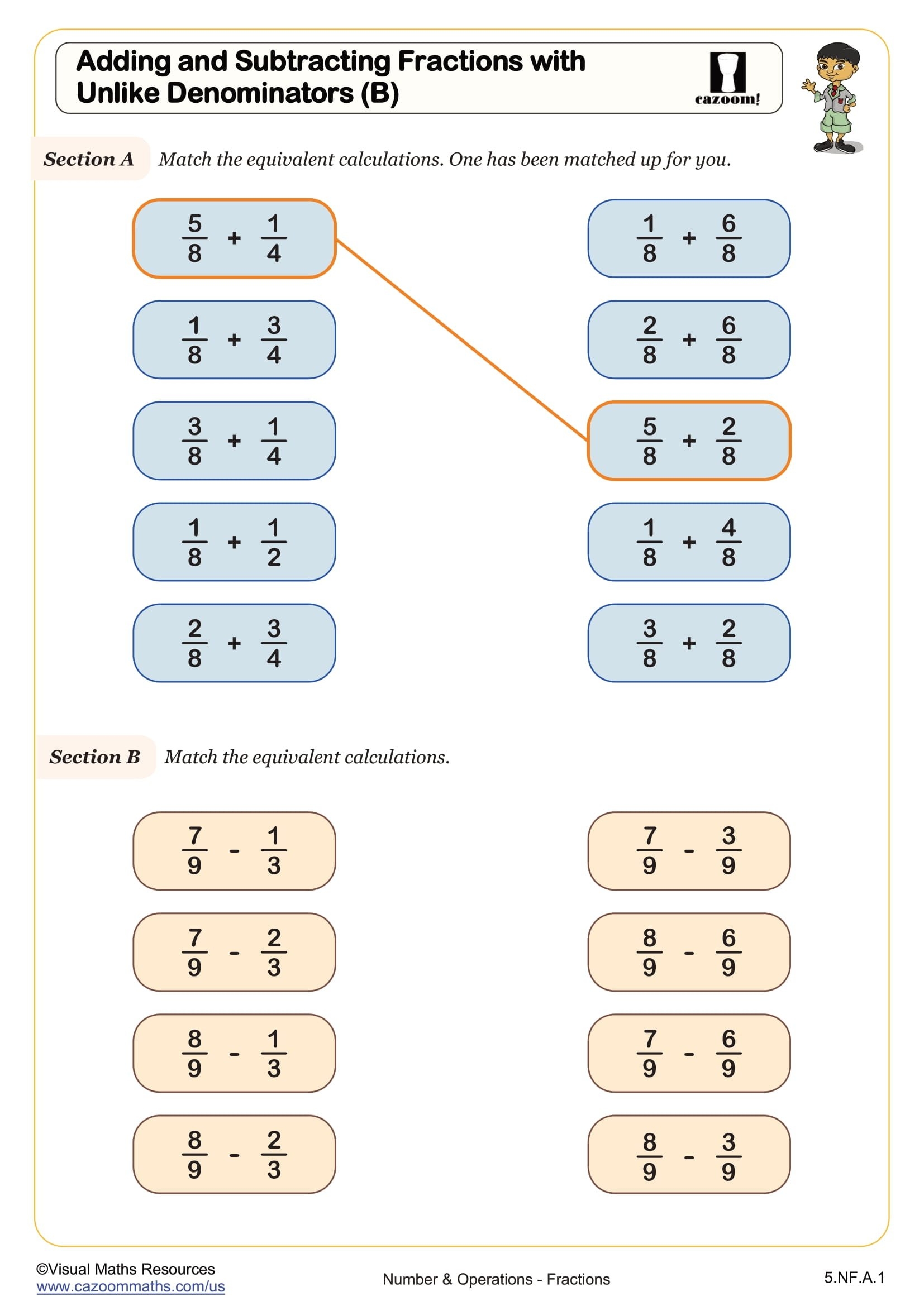 Add And Subtract Fractions With Unlike Denominators A Worksheet Printable PDF 5th Grade Number Operations Worksheet