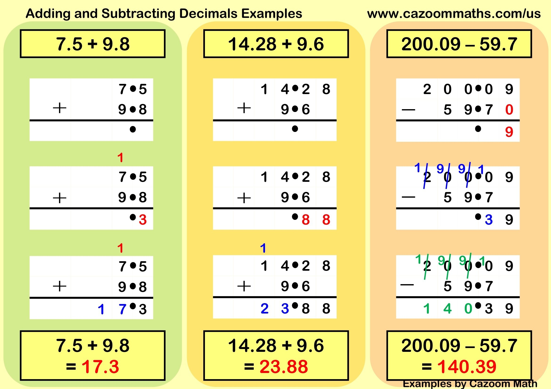 Adding And Subtracting Decimals Examples FREE Teaching Resources