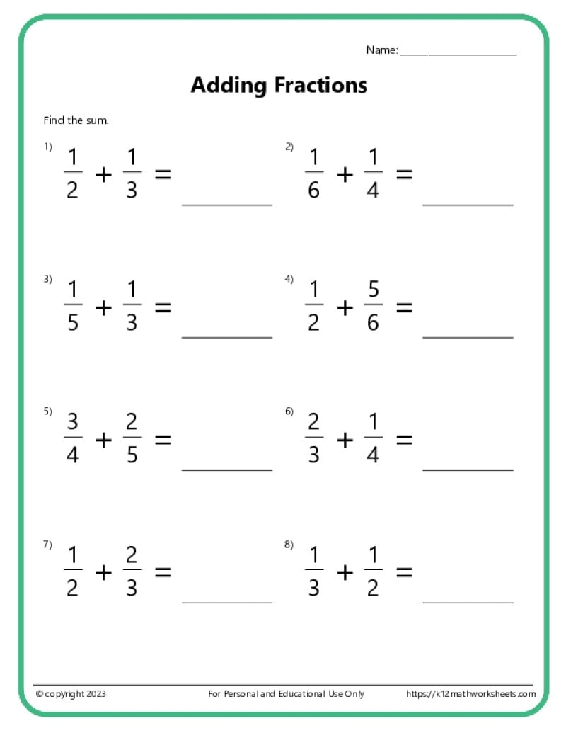 So, if you’re looking to improve your skills in adding fractions with different denominators, give these worksheets a try. With dedication and practice, you’ll soon be adding fractions like a pro. Keep at it, and you’ll see progress before you know it!