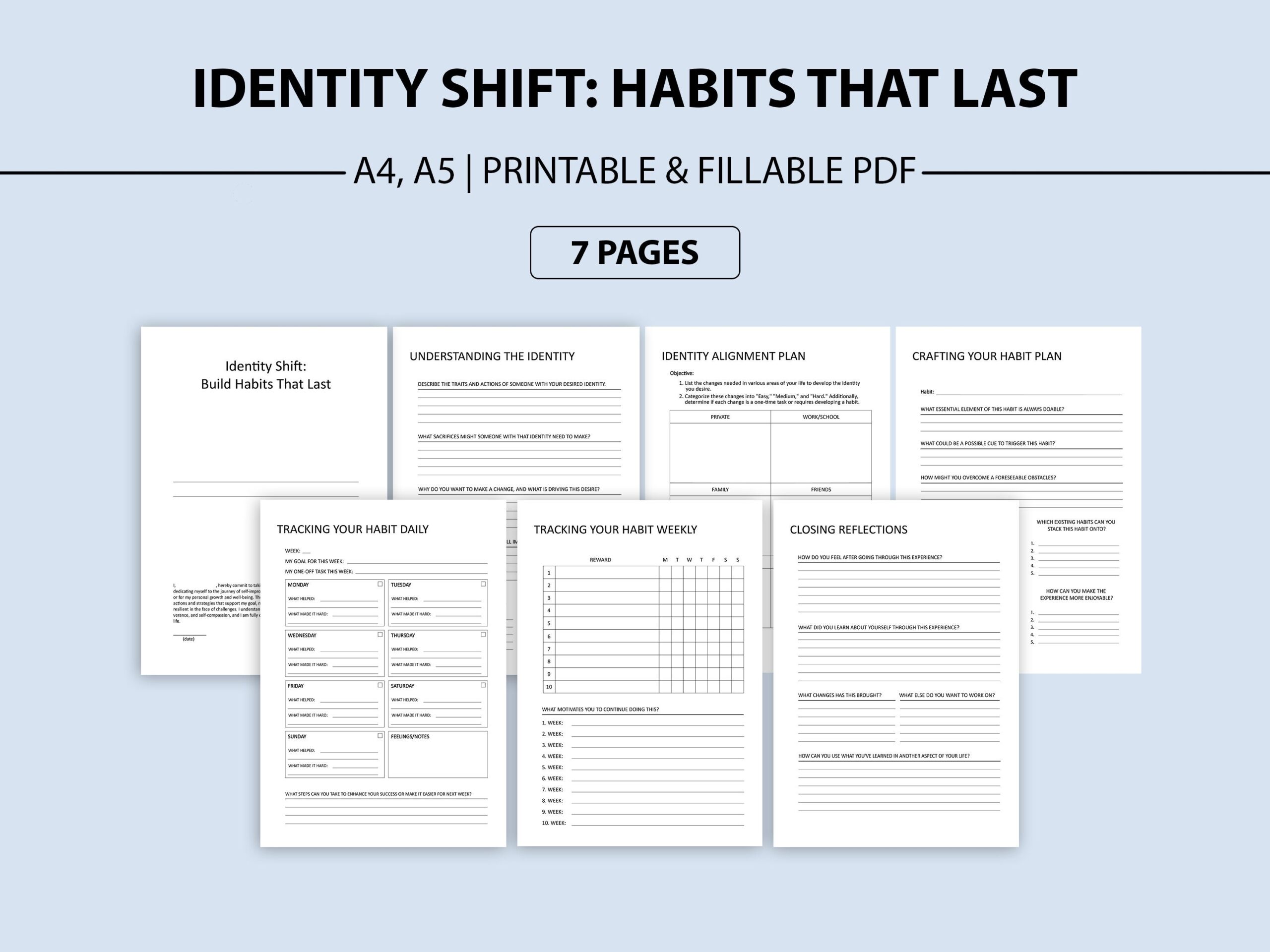 Atomic Inspired Habits Identity Shift Worksheet Build Lasting Habits Positive Change Personal Growth James Clear Etsy