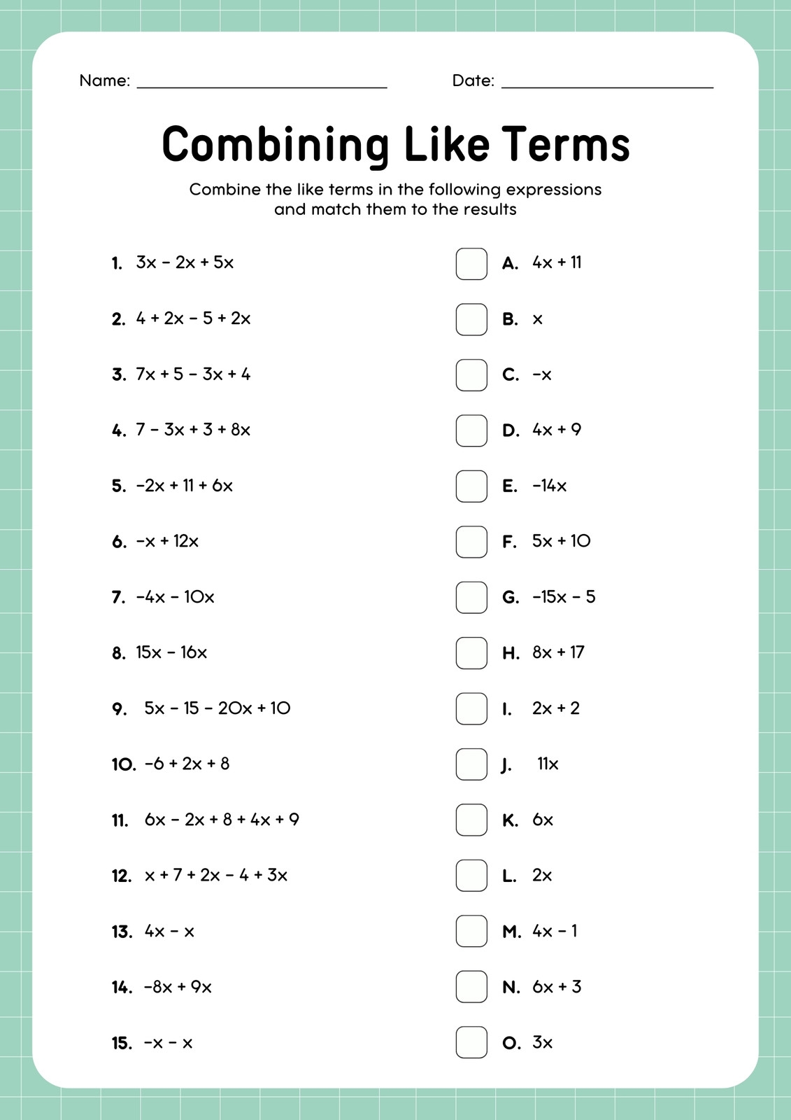 Free Custom Combining Like Terms Worksheet Templates Canva