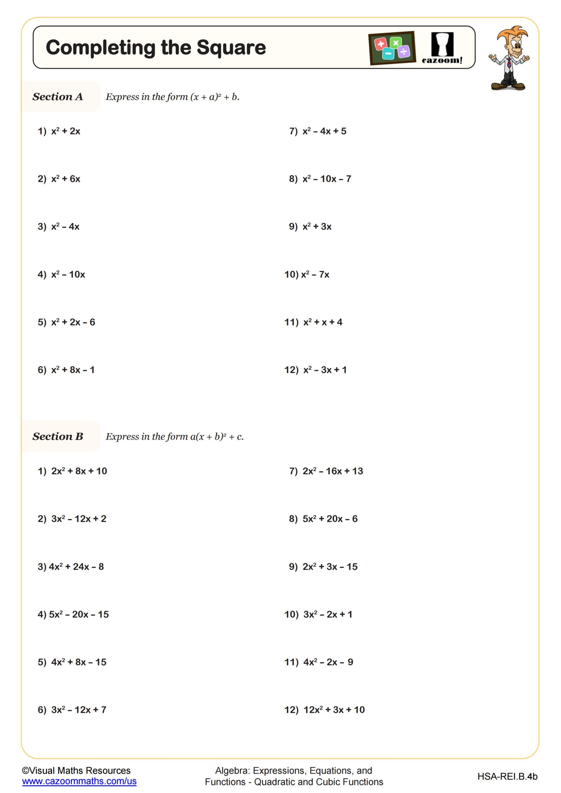 Complete the Square Worksheet: Practice Makes Perfect