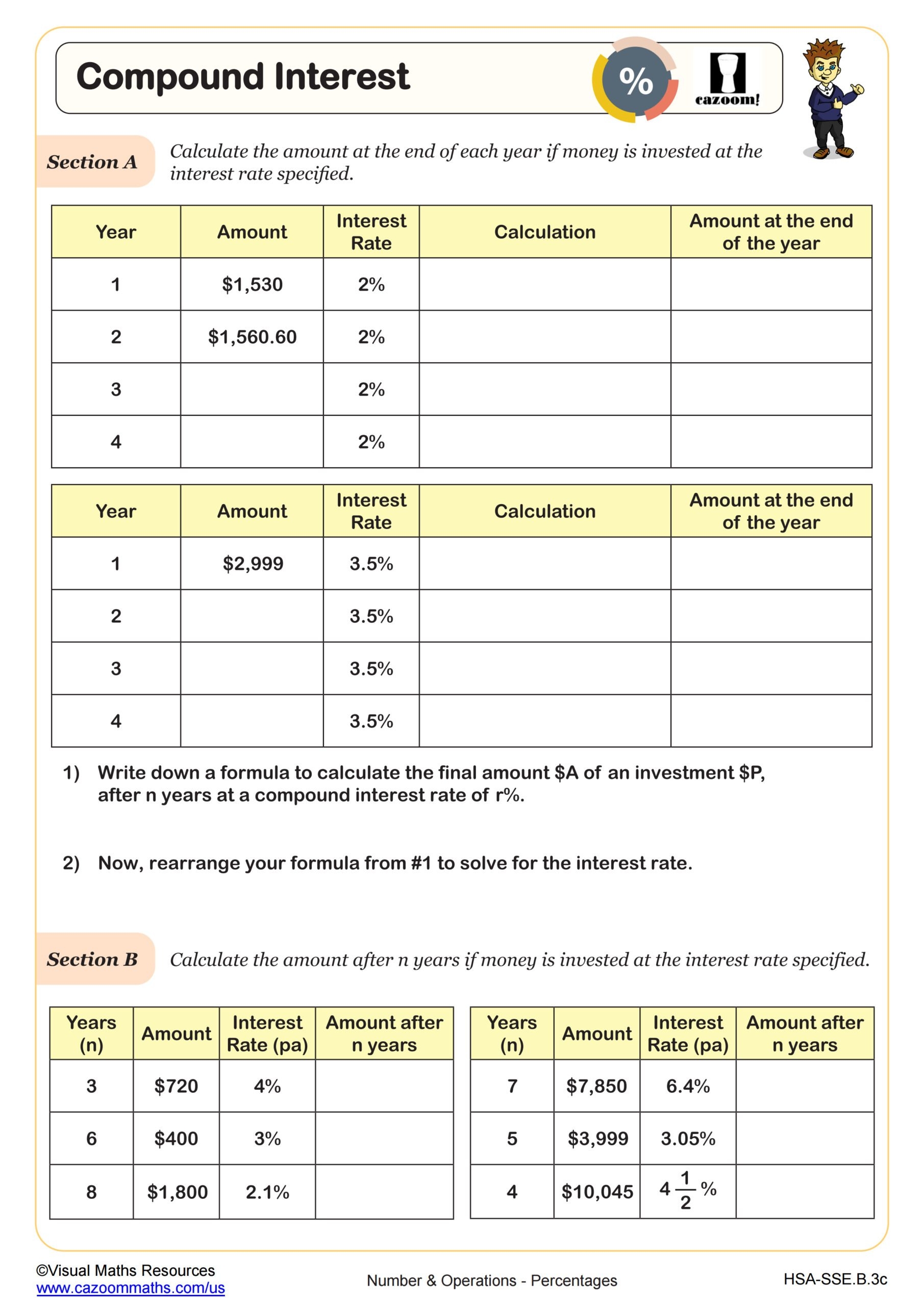 FIND THE INITIAL INVESTMENT IN THE AMOUNT OF COMPOUND INTEREST RATE PROBLEMS Math Worksheets Made By Teachers