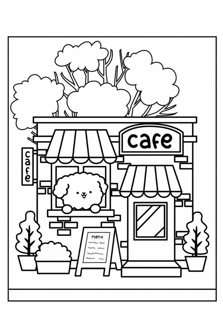 Cozy Fall Cute Simple Coffee Shop Coloring Pages Bundle Coloring Pages For Adults And Kids