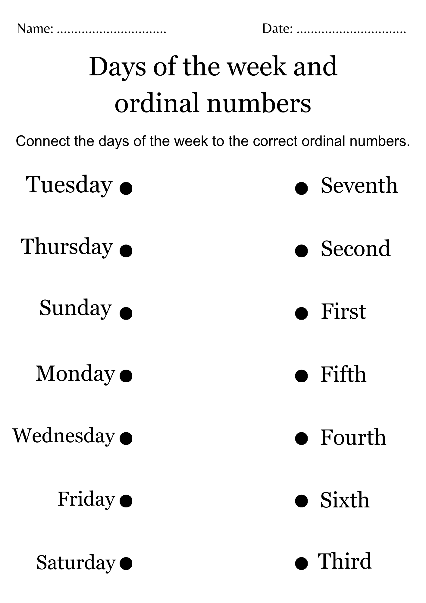 Ordinal Numbers Days Of The Week Worksheet Made By Teachers
