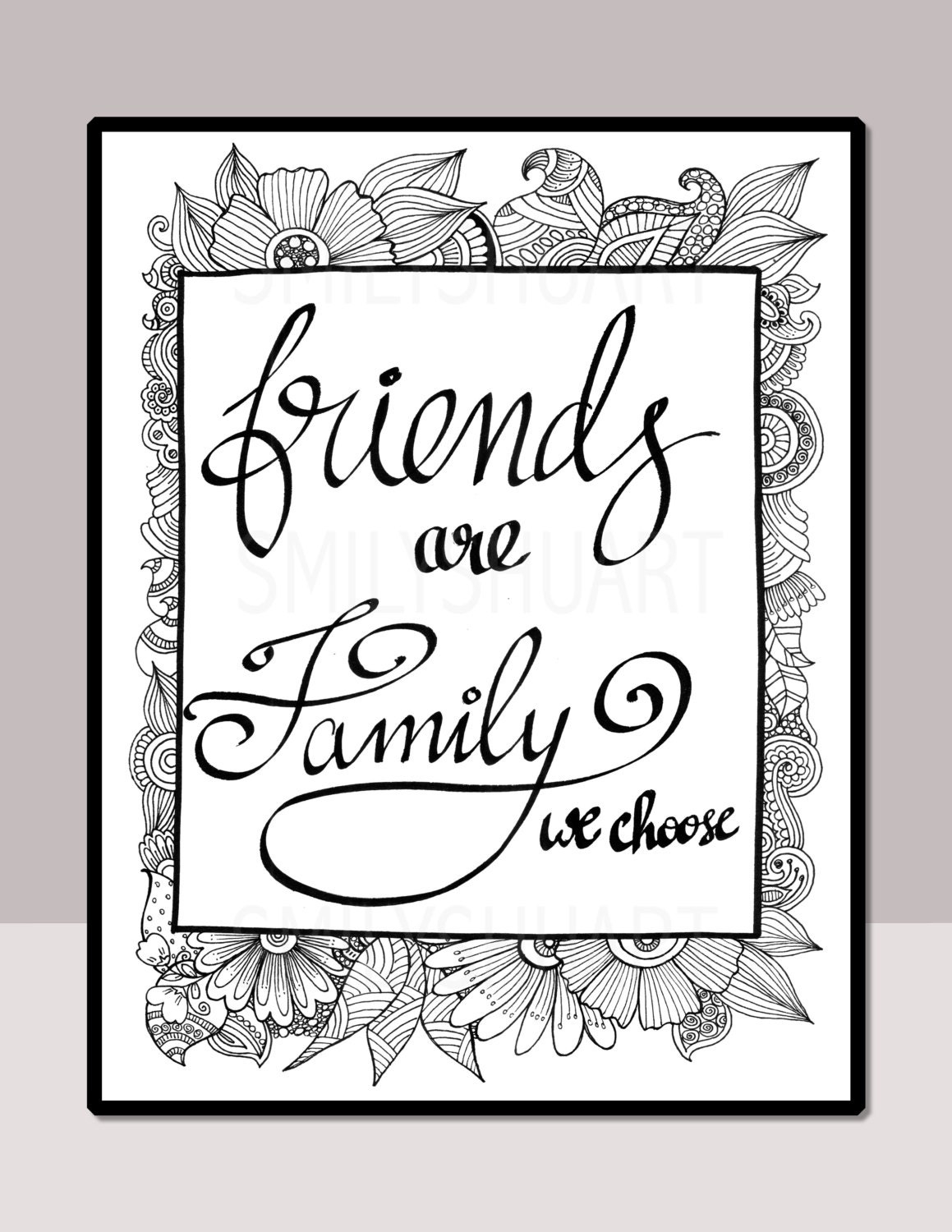 Friends Are Family We Choose Printable Quote Coloring Page Friendship Quote Coloring Henna Design Mindfulness Coloring Friendship Gifts Etsy