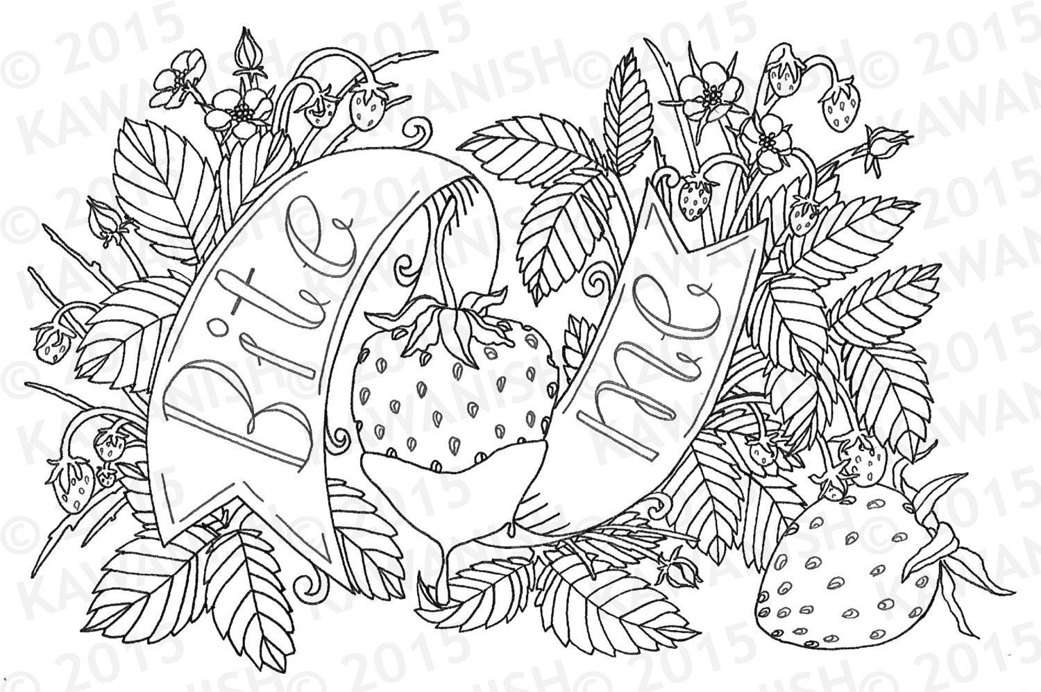 Bite Me Strawberry Adult Coloring Page Wall Art Gift Funny Humor Etsy