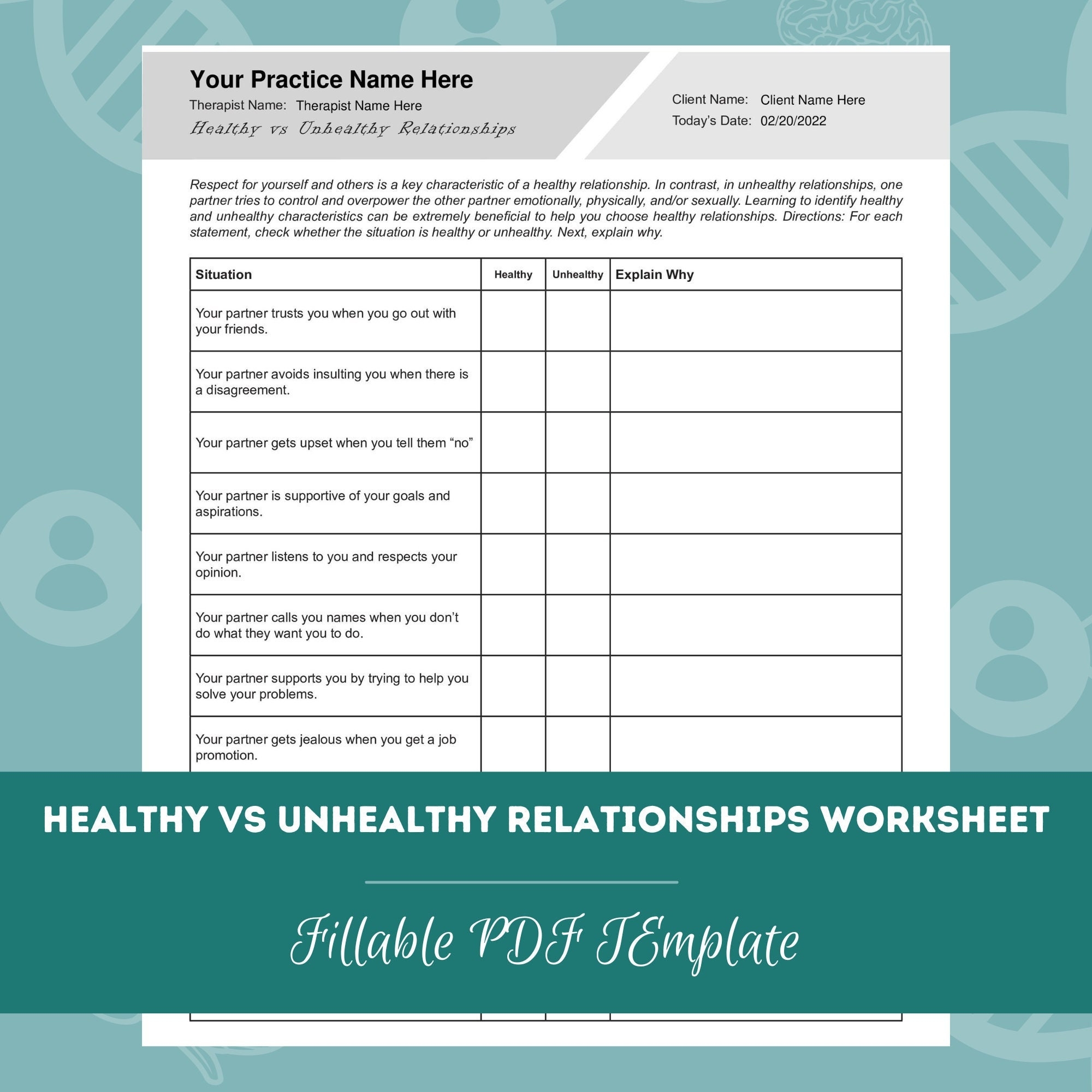 Healthy Vs Unhealthy Relationships Worksheet Editable Fillable PDF For Counselors Psychologists Psychiatrists Therapists Etsy