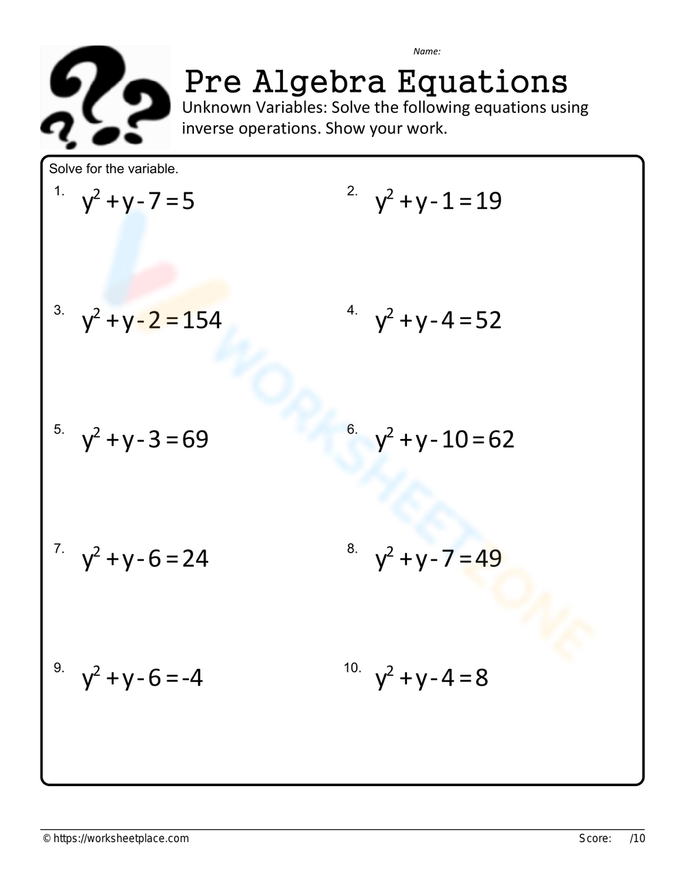 Pre Algebra Equations Worksheets 99Worksheets Worksheets Library