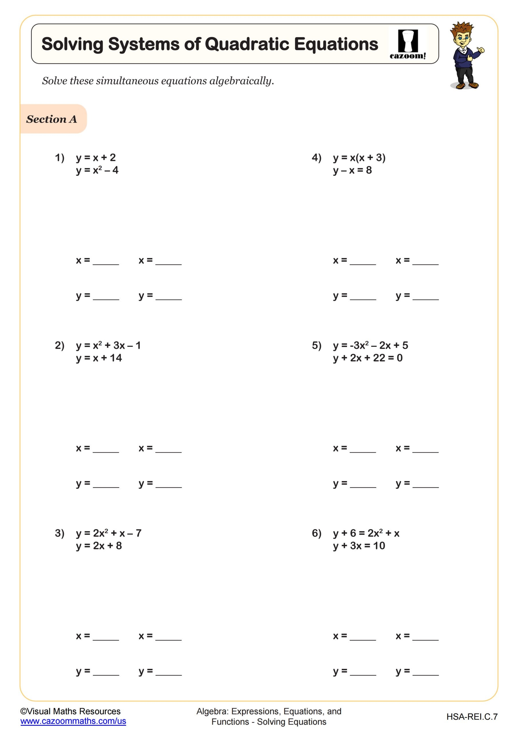 Quadratic Equations Worksheets